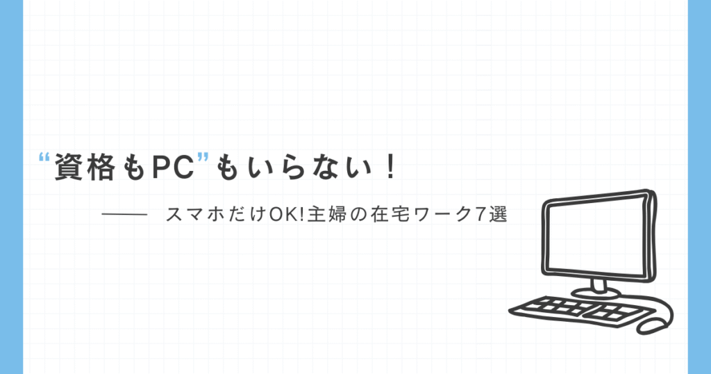 「資格もスキルもないけど、家でできる仕事ってあるの?」 「少しでも家計の足しにしたいけど、難しい仕事は無理そう…」 そんな悩みを抱える主婦の方はとても多いです。 でも実は、特別な資格がなくても始められる在宅ワークはたくさんあります。 しかも、... -