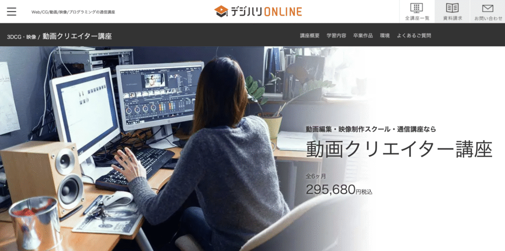 デジタルハリウッド・オンラインが提供するこの講座は、6か月プログラム/動画授業+課題添削型のスタイルを採用。受講料は 295,680円(税込)です。