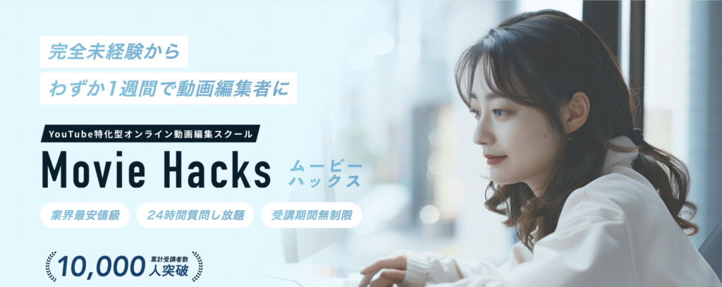| ムービーハックス | オンデマンド動画中心 | 質問し放題(※詳細は公式) | 案件獲得ノウハウや上位プランで支援 | YouTube特化の編集・運用ノウハウ | 短期集中&自走力重視の方 |
