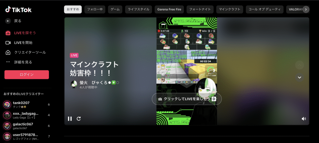 - バズを狙いたい:TikTok LIVE